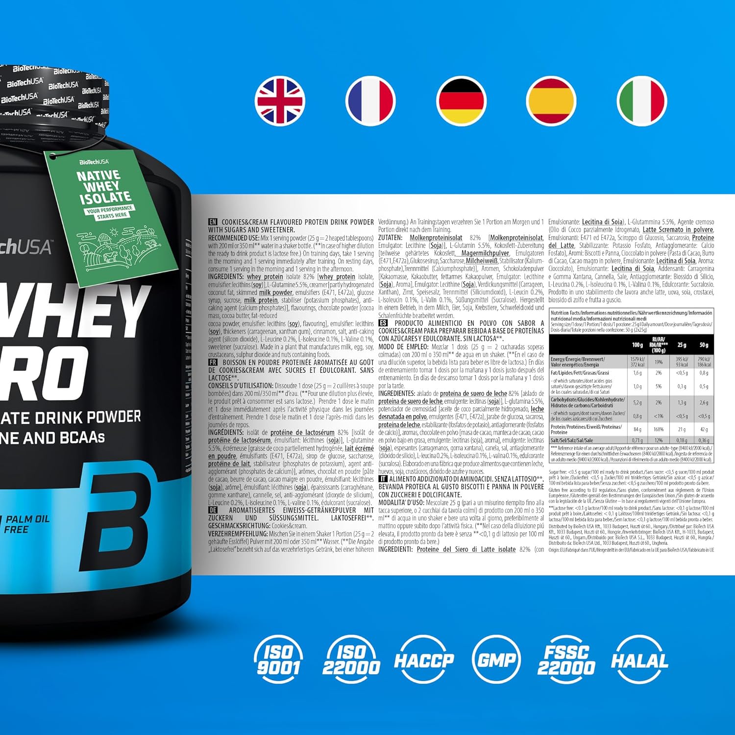 - Hàm lượng Protein cao: Cung cấp 25g Whey Protein Isolate tinh khiết mỗi khẩu phần.